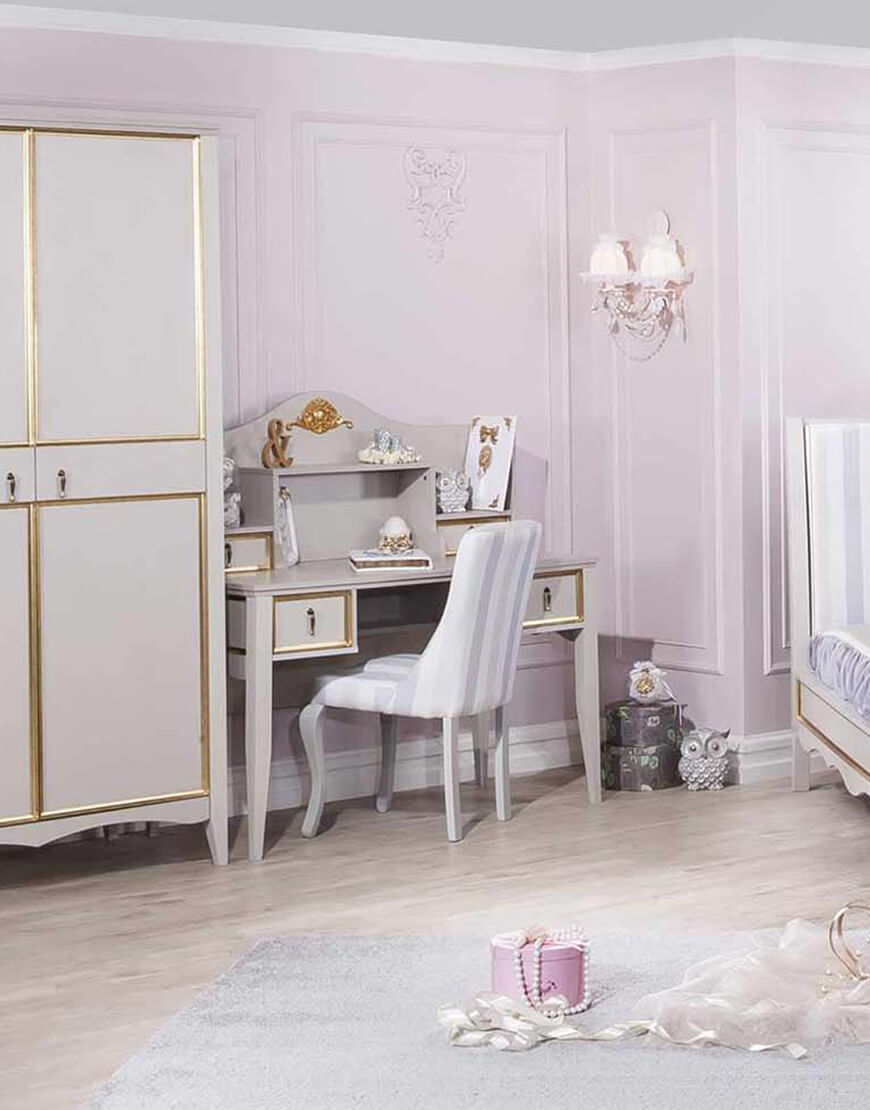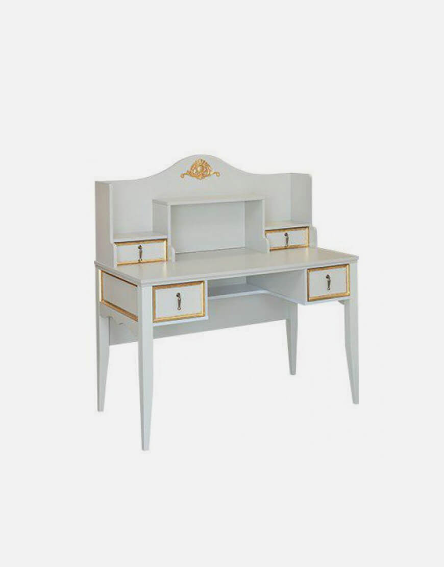 میز تحریر کلاسیک شامل چهار کشو و دو فضای دکور