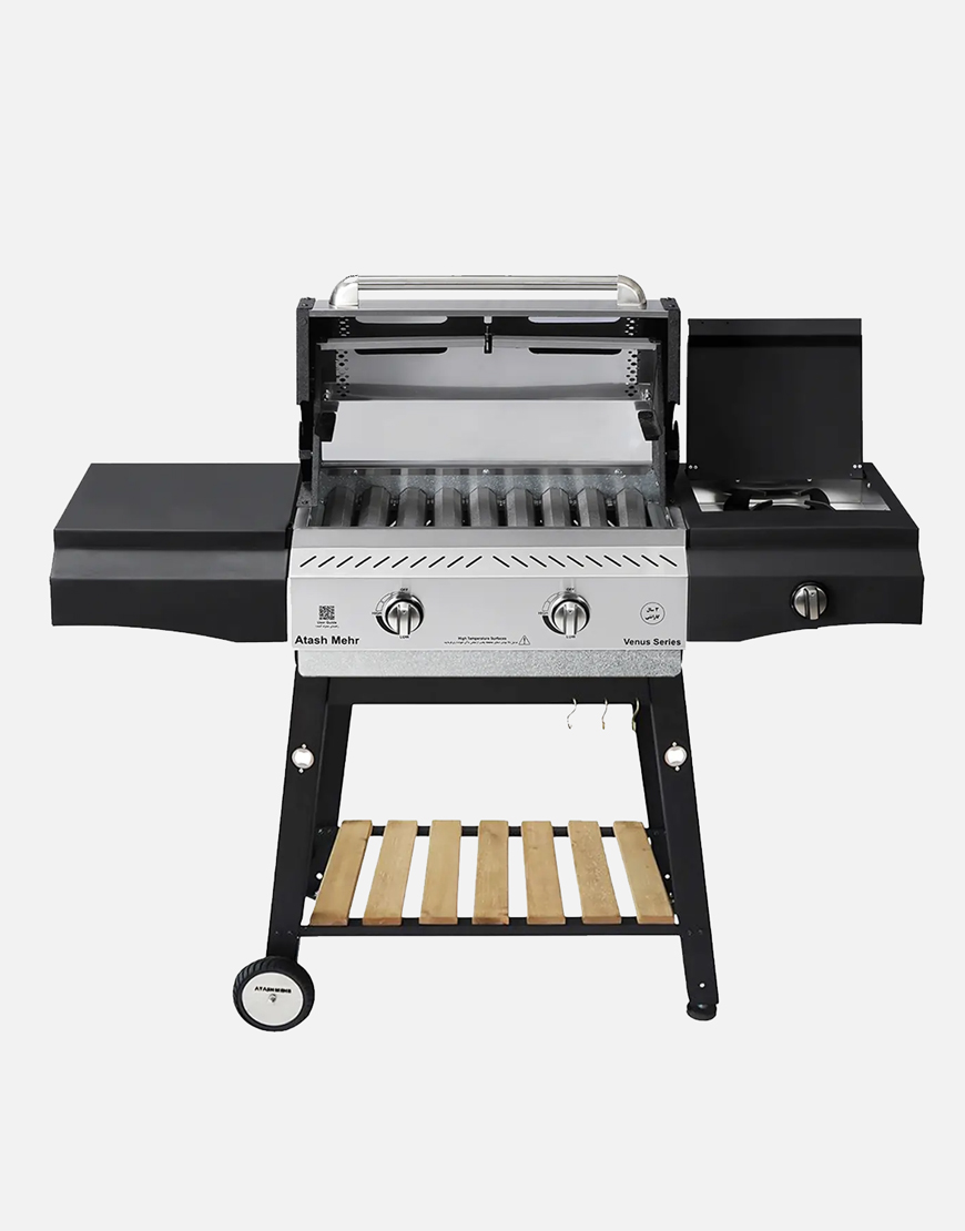 باربیکیو گازی افروزش اکو 102 با ۹ شعله قدرتمند، اجاق جانبی و میز کار، تجربهای کامل از پختوپز را برای شما فراهم میکند. طراحی مدرن، متریال باکیفیت، درب دوتکه و پایهی چرخدار، این محصول را به انتخابی شیک و کاربردی برای فضاهای باز تبدیل کرده است.