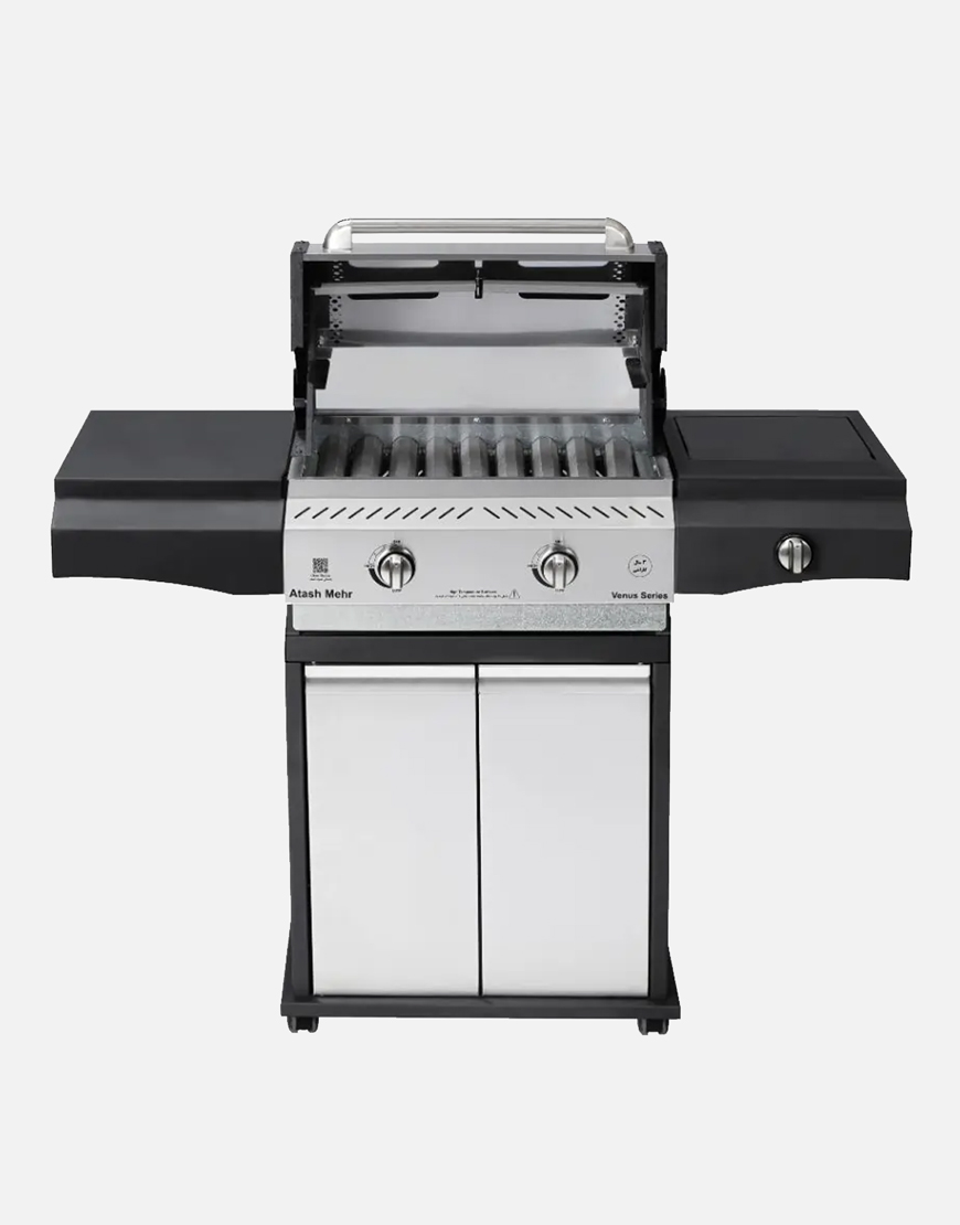 باربیکیو گازی افروزش اکو 103 هر آنچه که از یک باربیکیو می خواهید. بدنه استیل، درب محفظه دو تکه و استیل، اجاق خوراک پزی، سرشعله های چدن و کابینت در کنار هم یک محصول کامل به وجود آورده اند. این باربیکیو هم زیبا و شیک است و هم قیمت مناسبی دارد. هم می توان در آن کباب پخت هم انواع استیک و سبزیجات کبابی.