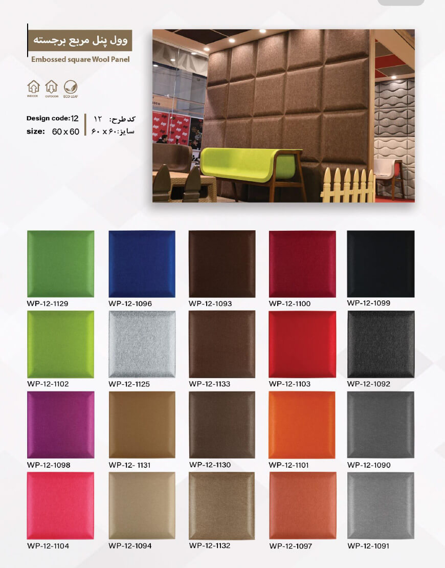 وول پنل به عنوان عایق صوتى و تزیینى محیط جهت نصب بر روى دیوار و سقف است و توسط مگنت ، چسب موکت و منگنه هاى دیوار کوب نصب مى شود.