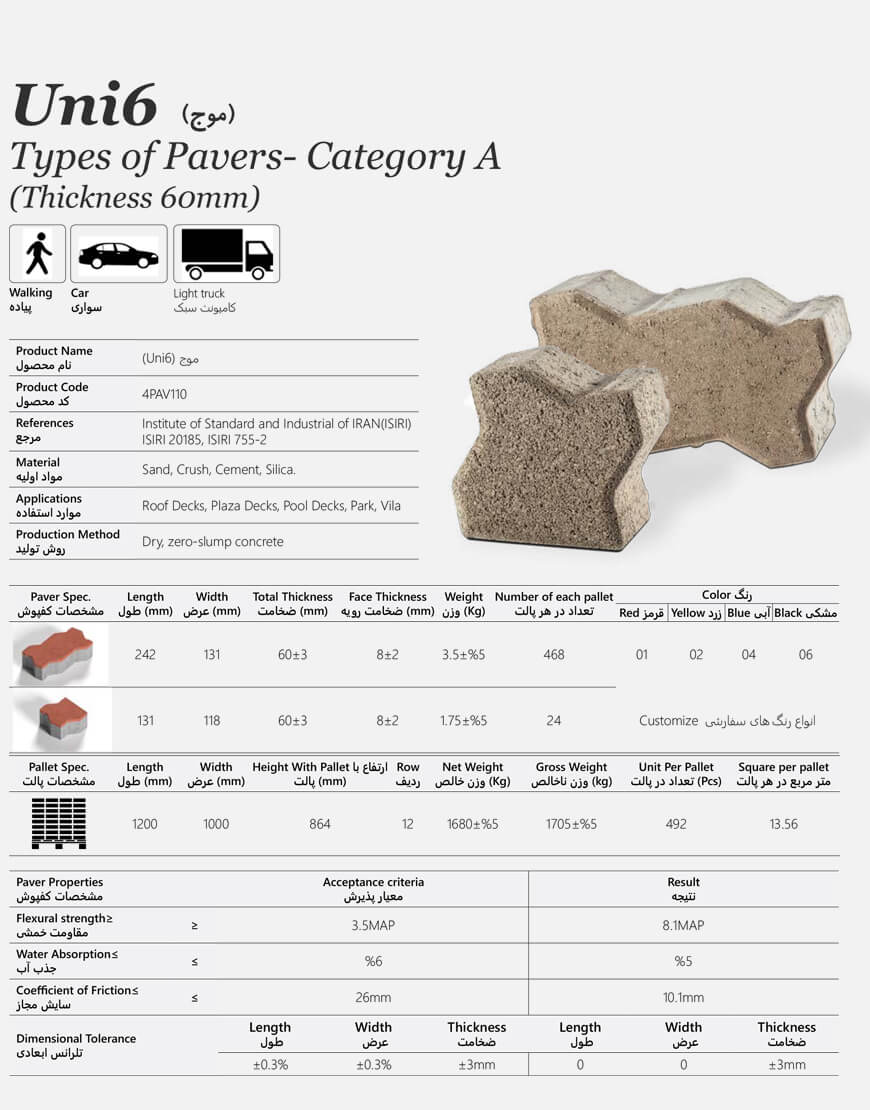کلیه کفپوشهای تولیدی این شرکت دارای گواهینامه تایید فنی از مرکز تحقیقات راه، مسکن و شهرسازی کشور می باشد.