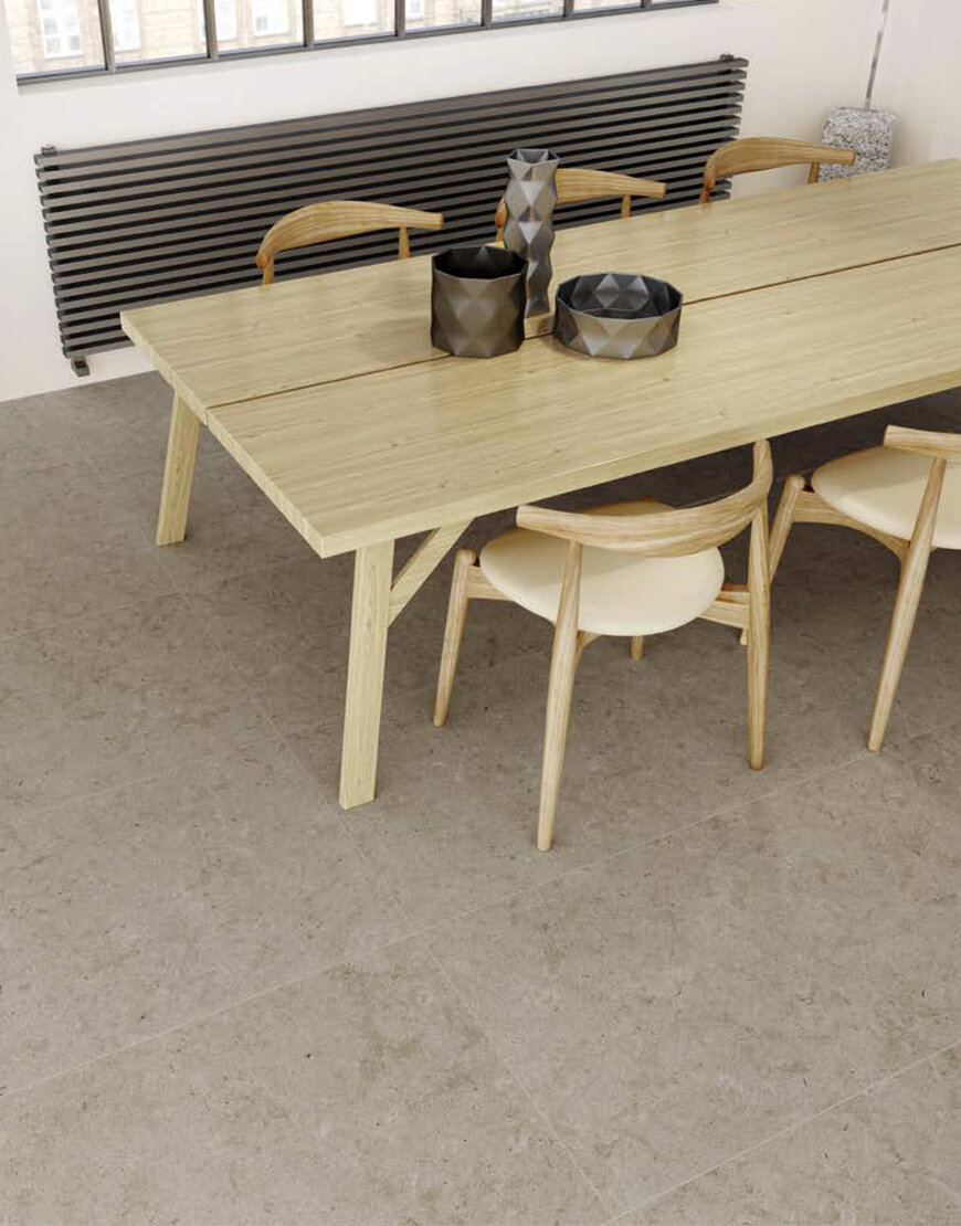 aesthetic with a mixture of subtle background veins and subtle inlaid fossils of shells. Its texture, a fine and smooth surface rugosity, mimics the particular treatment of carved