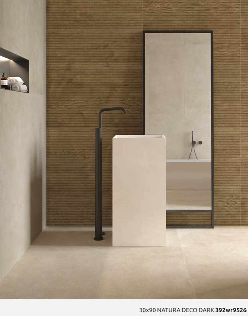 inspired in the most rustic stages of wooden laths used in outside claddings. This, altogether brings up an exquisite and suitable result in which wooden naturality and imelesness come eye to eye as indisputable protagonists.The Natura collection comes up in a range of three warm and soft colours (which are lumi, ecru, noce); regarding sizes, the collection is available as a 20×120 centimetres lath and also as a 30×90 centimetres wall cladding with a warm and interesting structure.