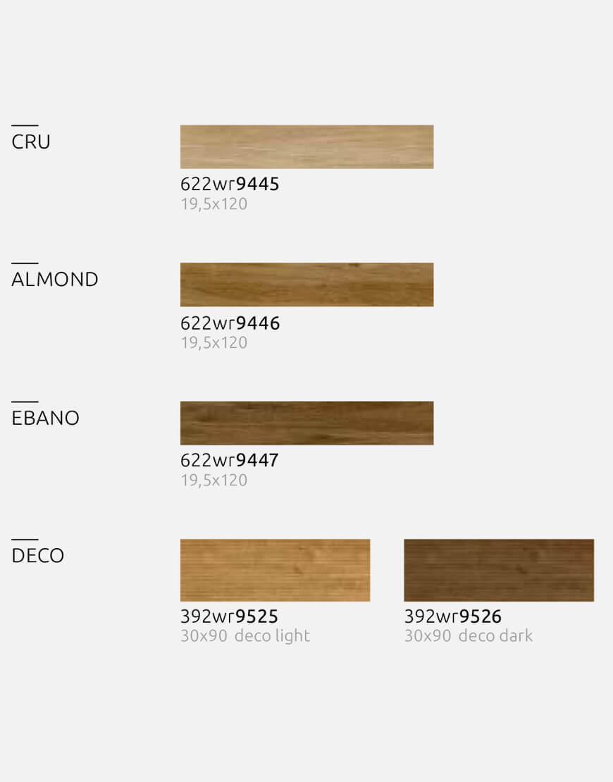 کد رنگ | ALMOND, CRU, DECO DARK, DECO LIGHT, EBANO |