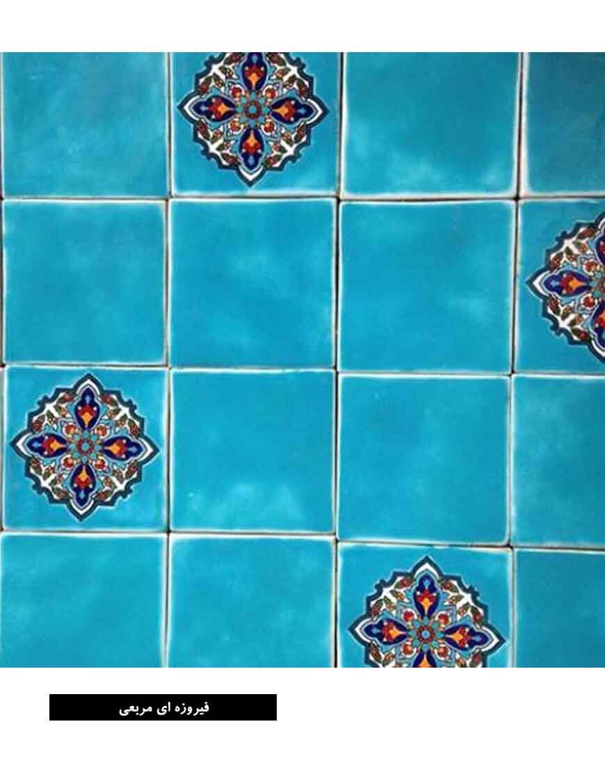 کاشی دست ساز لعاب فیروزه ای مربعی