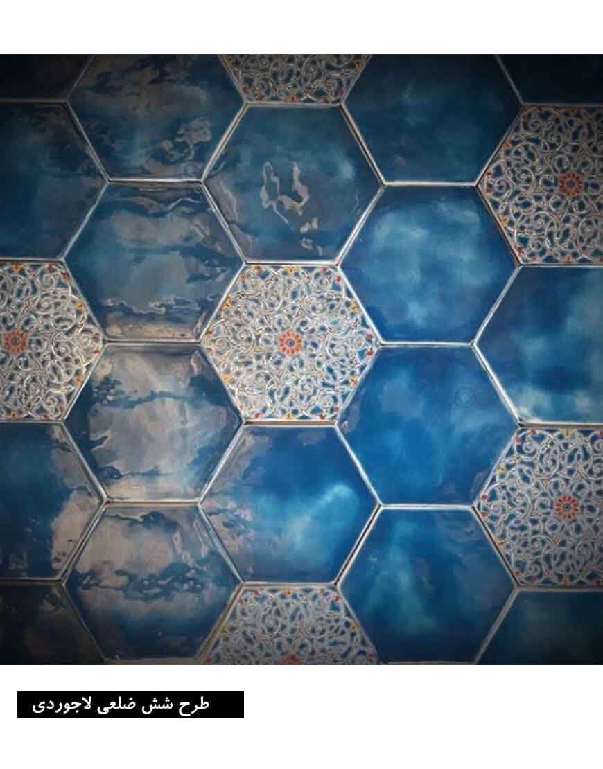 کاشی دست ساز طرح شش ضلعی لعاب لاجوردی