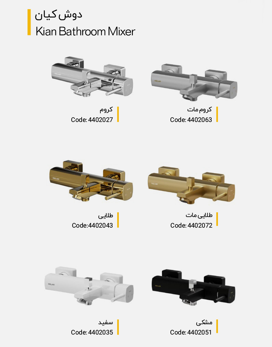 سفید, طلایی, طلایی مات, کروم, کروم مات, مشکی