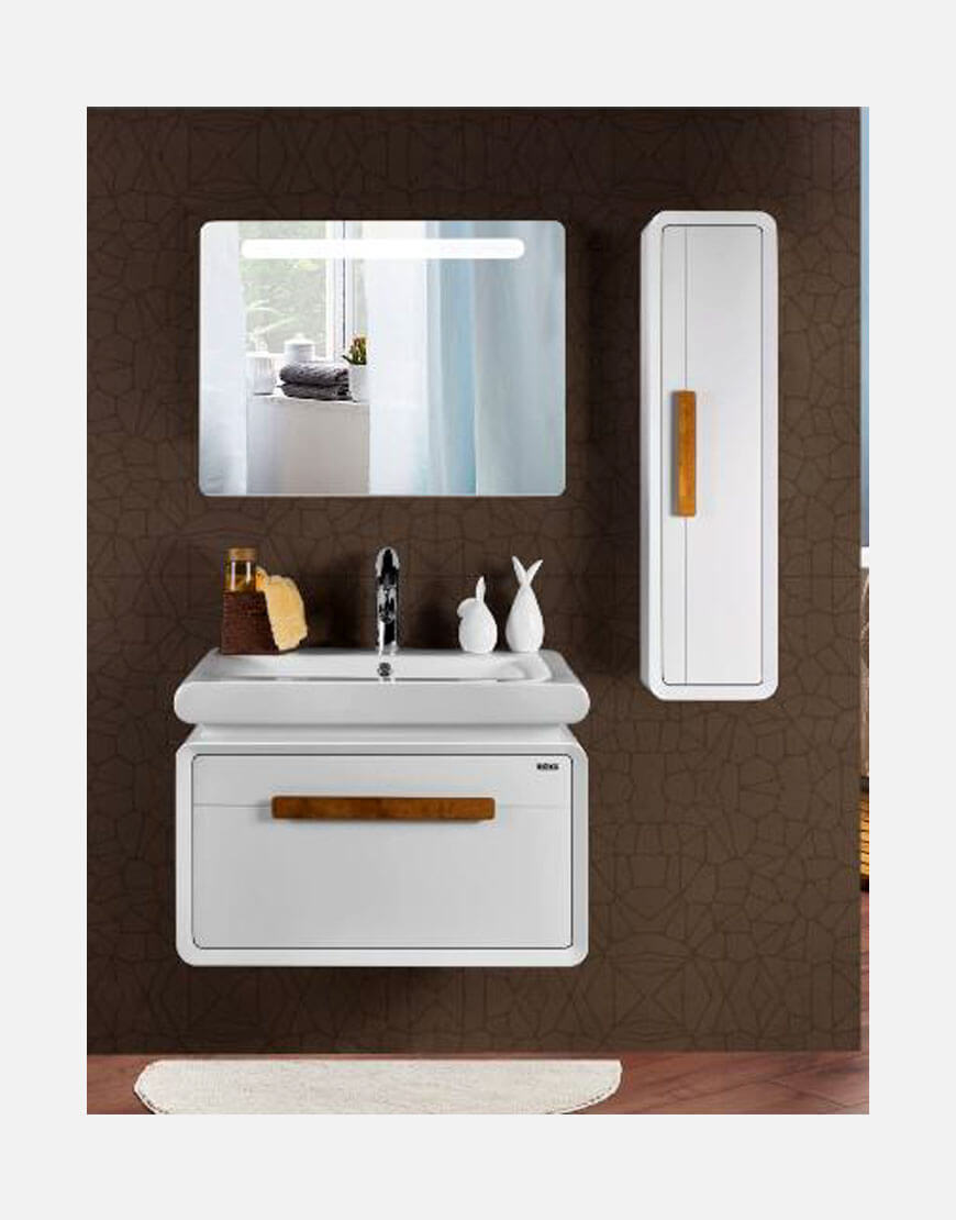 | ابعاد (طول*عرض*ارتفاع) | آینه : 75*55*4سانتیمتر, کابینت کناری : 98*24*14سانتیمتر, کابینت میانی : 75*48*50سانتیمتر |