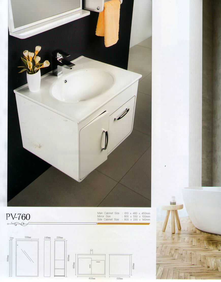 کابینت روشویی چوبی مدل PV760 با قابلیت نصب به دیوار یکی از محصولات عرضه شده توسط کمپانی صاحب نام لوتوس می باشد.این روشویی ها به دلیل فضایی که برای قرار دادن وسایل در اختیار افراد قرار می دهند و همین طور زیبایی که به سرویس های بهداشتی میدهند مورد استقبال زیادی قرار گرفته اند و مناسب فضاهای کوچک هستند.روشویی کابینتی PV760 مجموعه ای از آینه،باکس جانبی و کابینت است.جنس ورق کابینت و باکس از ورق پی وی سی است.ورق PVC (فومیزه) ورق هایی هستند که با توجه به ساختار شیمیایی و فیزیکی خاصیت ضد آب پذیری دارند و در برابر رطوبت و نم مقاومند.علاوه بر این فضای داخلی باکس و کابینت روشویی نیز رنگ شده است که نظافت راحت تری برای مصرف کننده ایجاد میکند. استفاده از رنگ مات در این محصول اصالت بیشتری به ماهیت و زیبایی کار داده است. تمامی درب ها و کف کار به صورت قاب تنک بوده و به عبارتی دو تا سه لایه ورق PVC بر روی آن کار شده است.در روشویی کابینتی لوتوس از لولای استینلس استیل ضد زنگ و سنگ با کیفیت لعاب بالا (نانو) و آنتی باکتریال استفاده شده است.استفاده از روشویی های کابینتی علاوه بر اینکه فضایی را برای قرار دادن وسایل در اختیار افراد قرار میدهند، جلوه و زیبایی خاصی را به سرویس های بهداشتی میبخشند.شایان ذکر است محیط سرویس های بهداشتی منبعی از هزاران میکروب بوده و با هر بار عمل فلاش تانک تعداد زیادی از این میکروب ها تا شعاع چند متری اسپری میگردد. با استفاده از کابینت روشویی پی وی سی (کابینت دستشویی) در سرویس بهداشتی و قراردادن مسواک و سایر وسایل بهداشتی در یک محفظه بسته از بروز ارگانیسمهای خطرناک ازجمله : استرپتوکوکسی ، ای کولی و استافیلاکوکسی جلوگیری مینماید.شرکت لوتوس تولید کننده ی انواع روشویی های کابینتی پایه دار و دیواری با طرح چوب، مدرن و کلاسیک جزء معدود تولیدکننده های کابینت قوس دار (منحنی) می باشد.محصولات کمپانی لوتوس، توسط بروزترین ماشین آلات روز دنیا با طرح های زیبا و متنوع، تولید شده اند.