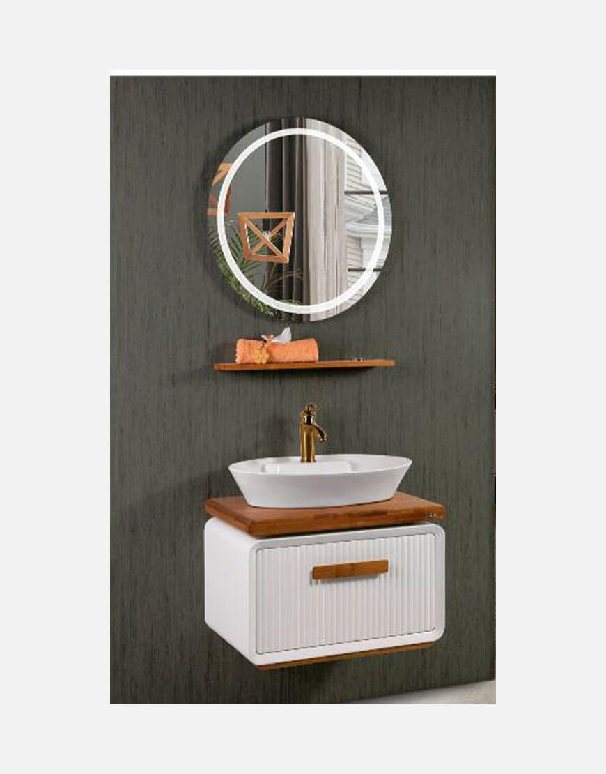 | ابعاد (طول*عرض*ارتفاع) | آینه : 65*65*4سانتیمتر, کابینت میانی : 65*41*45سانتیمتر |