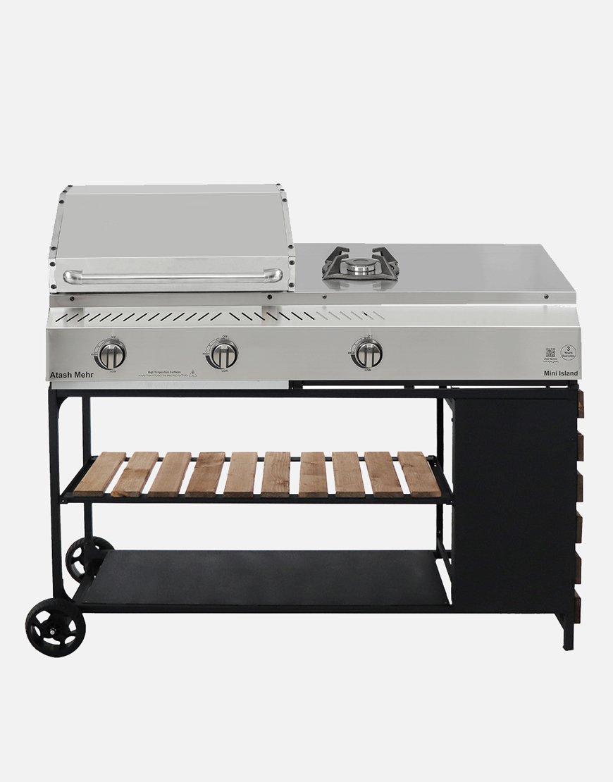 باربیکیو مینی آیلند پلاس۱۰۰ یک باربیکیوی اجاق دار است. طول باربیکیو ۱۲۰ سانتی متر و دارای پایه پرتابل است.