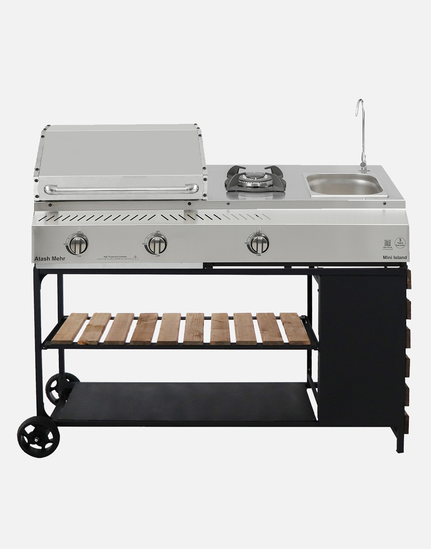 باربیکیو مینی آیلند پلاس ۱۰۲ آتش مهر، یک باربیکیو آیلند اقتصادی و کارآمد است که برای اولین بار و به صورت اختصاصی توسط شرکت آتش مهر طراحی و تولید شده است. این باربیکیو دارای (یک کباب پز 55 سانتی درب دار – یک اجاق خوراک پزی – یک سینک ظرفشویی) است.