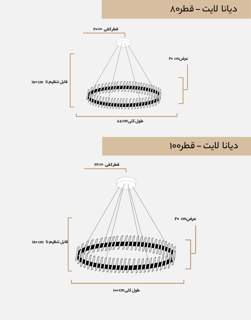 قطر 80 : 7200 لومن – قطر 100: 9000 لومن