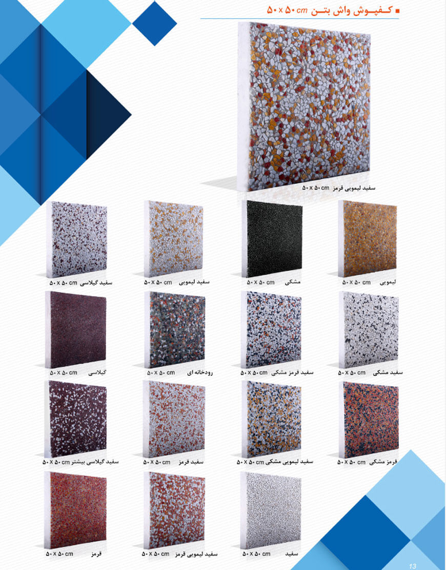 واش بتن کفپوشی است که ار مواد مختلفی از قبیل سیمان، پودر سنگ، چسب بتن، ژل میکروسیلیس و مواد روان کننده بتن ساخته میشود. و برای تولید آن از لوازم و دستگاههای فشار آب شدید استفاده میکنند. با توجه به این فرایند میتوان انتظار داشت که موزاییک حیاط واش بتن از کیفیت و کارایی بالایی برخوردار است. اکثرا از موزاییکها برای مسیرهای پر تردد مانند پارکینگها، پیادهرو و… استفاده میکنند و از این رو اگر از کفپوشهایی با کیفیت پایین استفاده کنید پس از مدتی شاهد خرابی و شکستگی آنها خواهیم بود. موزاییک حیاط واش بتن 50 در 50 از محصولات است که میتوان از آن در فضاهای مختلفی از قبیل حیاط و پارکینگ و پشت بام استفاده کرد.