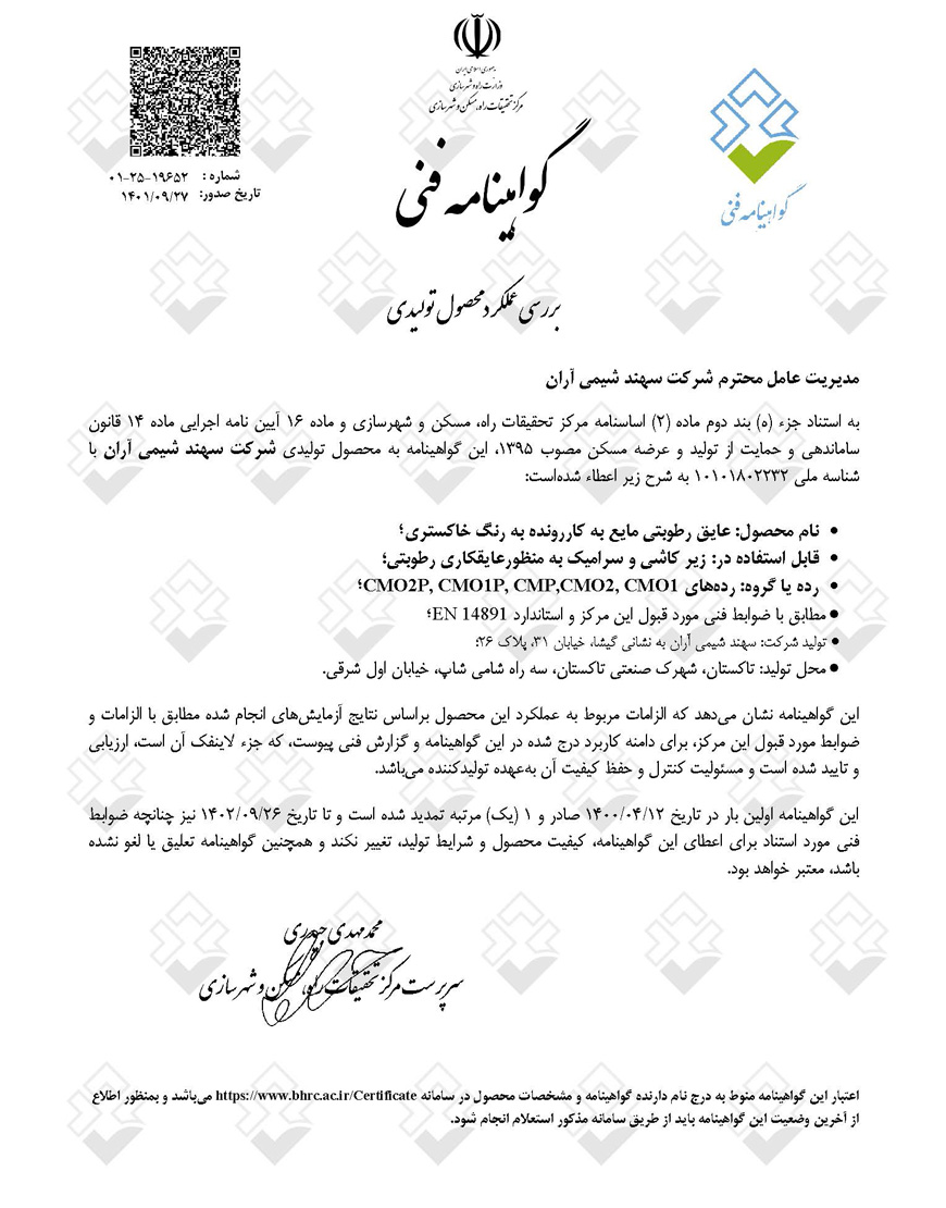| استانداردها | دارای گواهینامه فنی از مرکز تحقیقات راه، مسکن و شهرسازی |