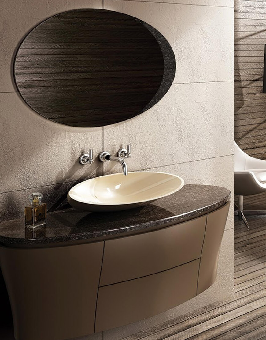 6- کاسه روشویی به صورت رو کار قرار گرفته و شیرآلات در قسمت بالایی آن نصب میشوند. میتوان با کمی سلیقه و ایجاد هماهنگ میان طرح شیرآلات با روشویی، هارمونی زیبا و شیکی ایجاد کرد.