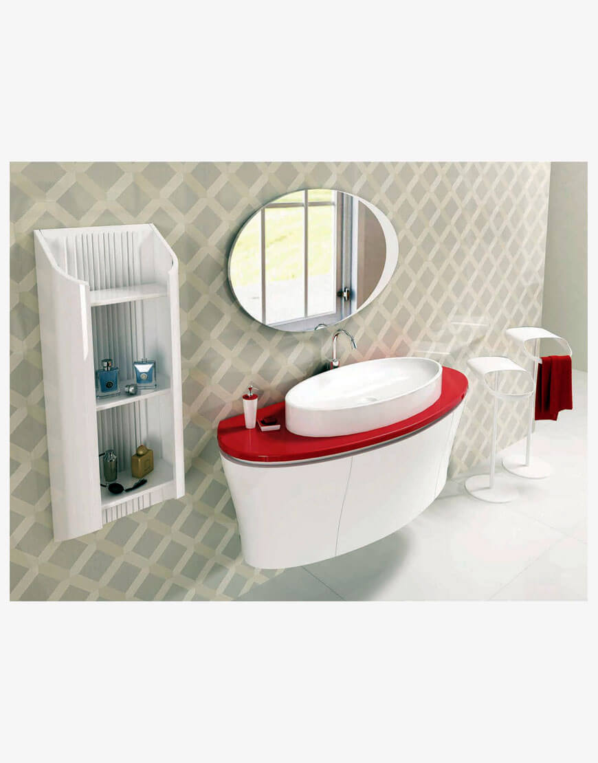 جنس | کاسه روشویی : پلی اکریلیک – کابین زیر روشویی ، قفسه ثابت دیواری و آینه : پی وی سی – صفحه روشویی : کورین ایرانی |