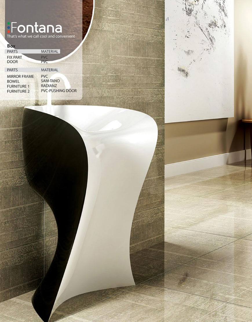 درباره شرکت: شرکت سام سنگان طرح نو با هدف ارائه محصولات لوکس ساختمانی-بهداشتی و دکوراتیو به همراه استفاده از مصالح کیفی مدرن و همچنین استفاده از سنگ های مصنوعی در صنعت ساختمان در سال ۱۳۸۷ تأسیس شد و در سالهای اخیر با اجرای پروژه های متعدد ، موفق به همکاری مؤثر با طیف وسیعی از سازندگان عرصه ساختمان ، انبوه سازان ، معماران و فروشگاههای بخش لوازم بهداشتی گردیده است. مشخصات محصول: روشویی کابینتی Fontana مجموعه ای از آینه ، کابین زیر روشویی است. جنس ورق کابینت و باکس از ورق پی وی سی می باشد.