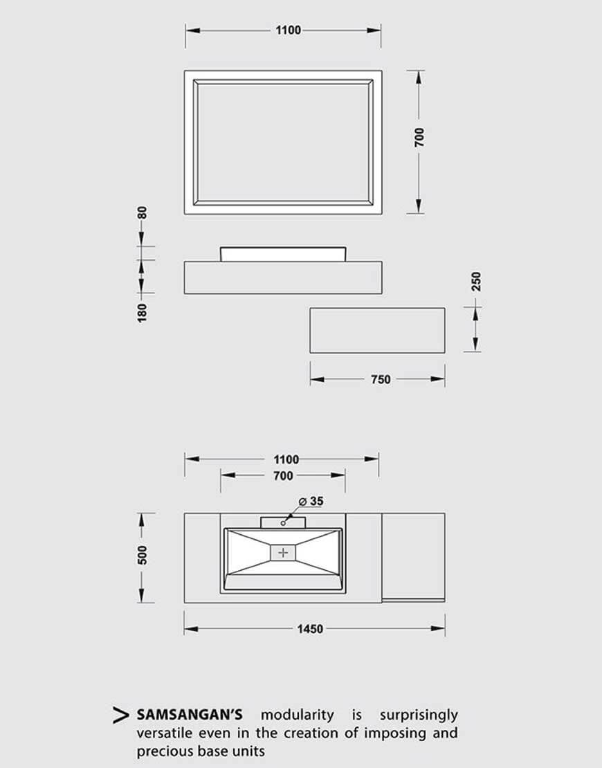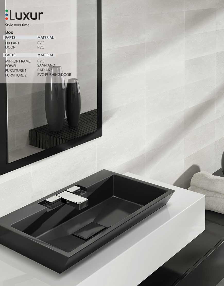 درباره شرکت: شرکت سام سنگان طرح نو با هدف ارائه محصولات لوکس ساختمانی-بهداشتی و دکوراتیو به همراه استفاده از مصالح کیفی مدرن و همچنین استفاده از سنگ های مصنوعی در صنعت ساختمان در سال ۱۳۸۷ تأسیس شد و در سالهای اخیر با اجرای پروژه های متعدد ، موفق به همکاری مؤثر با طیف وسیعی از سازندگان عرصه ساختمان ، انبوه سازان ، معماران و فروشگاههای بخش لوازم بهداشتی گردیده است. مشخصات محصول: روشویی کابینتی Luxur مجموعه ای از آینه ، کابین زیر روشویی است. جنس ورق کابینت و باکس از ورق پی وی سی می باشد.