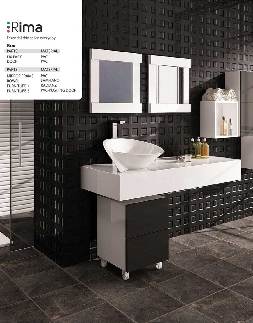 درباره شرکت: شرکت سام سنگان طرح نو با هدف ارائه محصولات لوکس ساختمانی-بهداشتی و دکوراتیو به همراه استفاده از مصالح کیفی مدرن و همچنین استفاده از سنگ های مصنوعی در صنعت ساختمان در سال ۱۳۸۷ تأسیس شد و در سالهای اخیر با اجرای پروژه های متعدد ، موفق به همکاری مؤثر با طیف وسیعی از سازندگان عرصه ساختمان ، انبوه سازان ، معماران و فروشگاههای بخش لوازم بهداشتی گردیده است. مشخصات محصول: روشویی کابینتی Rima مجموعه ای از آینه ، کابین زیر روشویی است. جنس ورق کابینت و باکس از ورق پی وی سی می باشد.