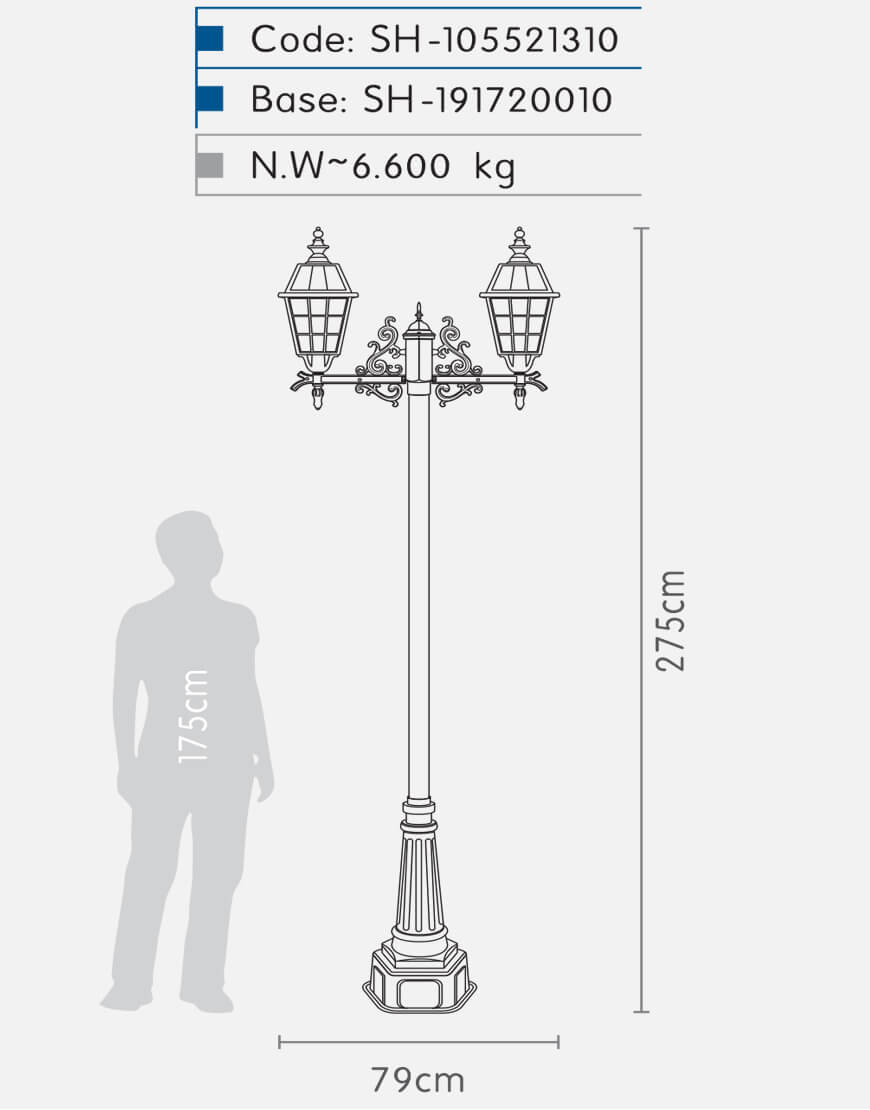 چراغ دوشاخه پارکی شب تاب مدل ونیز SH-۱۰۵۵۲۱۳۱۰