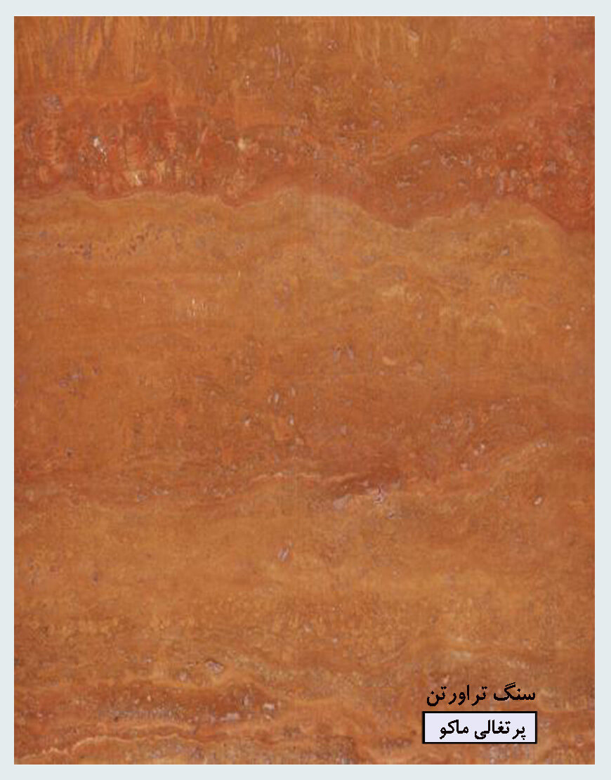 سنگ تراورتن پرتقالی ماکو جزء تراورتن های لوکس و رنگی ایران است و شهرت جهانی دارد . سنگ تراورتن پرتقالی ماکو تراکم بالایی دارد و از تخلخل کمی برخوردار است و به همین دلیل ساب پذیری خوبی دارد . سنگ تراورتن پرتقالی ماکو بصورت کوپ سنگ خام و بریده شده به سایر کشورها صادر میگردد . کاربرد سنگ تراورتن پرتقالی ماکو در نمای ساختمان و نمای داخلی و کارهای دکوراتیو میباشد.