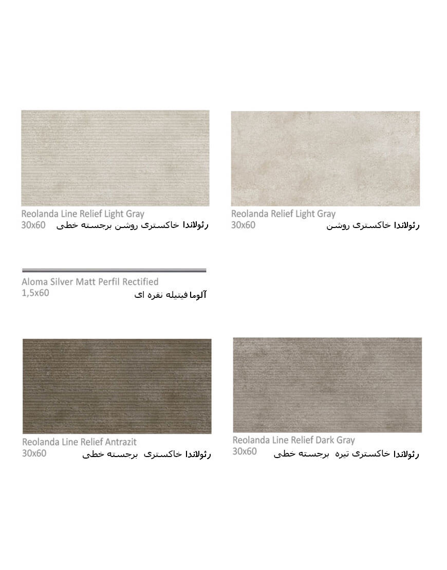 | نوع | برجسته خطی خاکتری آنترزیت, برجسته خطی خاکتری تیره, برجسته خطی خاکتری روشن, خاکستری کف موزاییکی, دکور خاکستری, زمینه خاکستری روشن, طرح سه بعدی موزاییک, فتیله نقره ای |