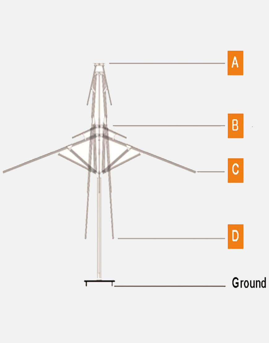 ابعاد (طول*عرض*ارتفاع) | چتر: 350*350 سانتیمتر, سنگ پایه: 70*70 سانتیمتر |