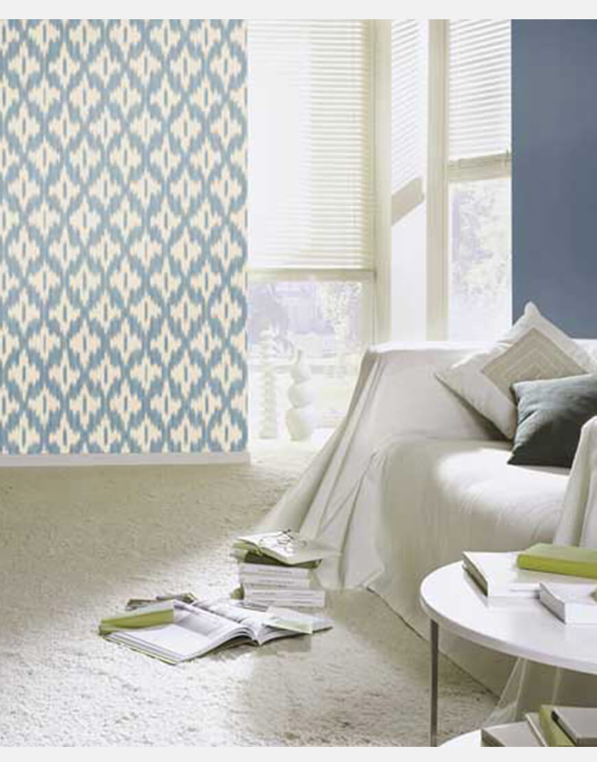 روند رو به رشد هند به طور مداوم به ما عرضه می شود و هنر بافندگی طلای شرقی را در بر می گیرد تا دیوارهای شهری را روشن کند. در اینجا این الگو برای خلق و خوی ظریف در کرم و آبی عمیق است.