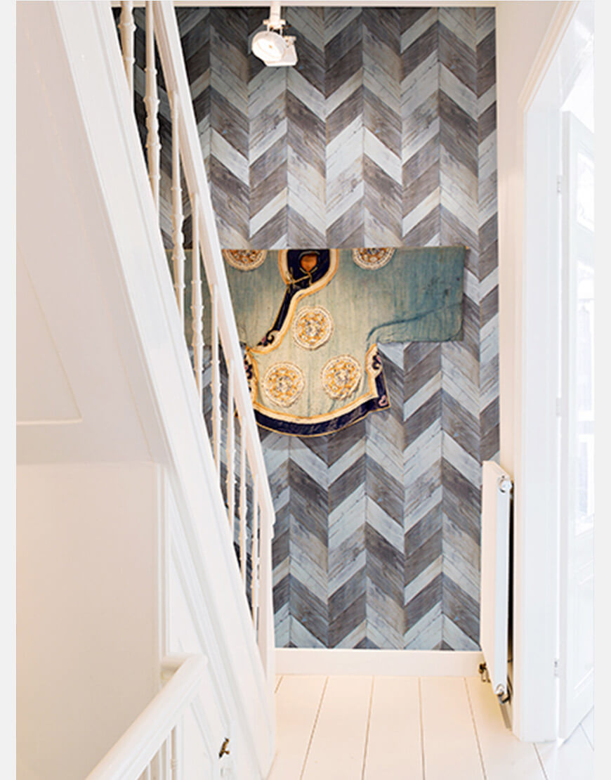 کاغذ دیواری لطیف چوب پنبه ای با کارشدگی های فلزی و پس زمینه شکسته، ظاهری بدیع صنعتی خلق می نماید. سایه های گرم قرمز، نارنجی و صورتی با رنگ های سبز، خاکستری و سفید در هم آمیخته است. ایسنشال در قاب زمان نمی گنجد و به طوری طراحی شده است که در اثر زمان هوازده می نماید. سطوح زبر زنگارگون و ماسه مانند با حسی لطیف آمیختگی کاملی با طرح مات ساده این مجموعه دارد.
