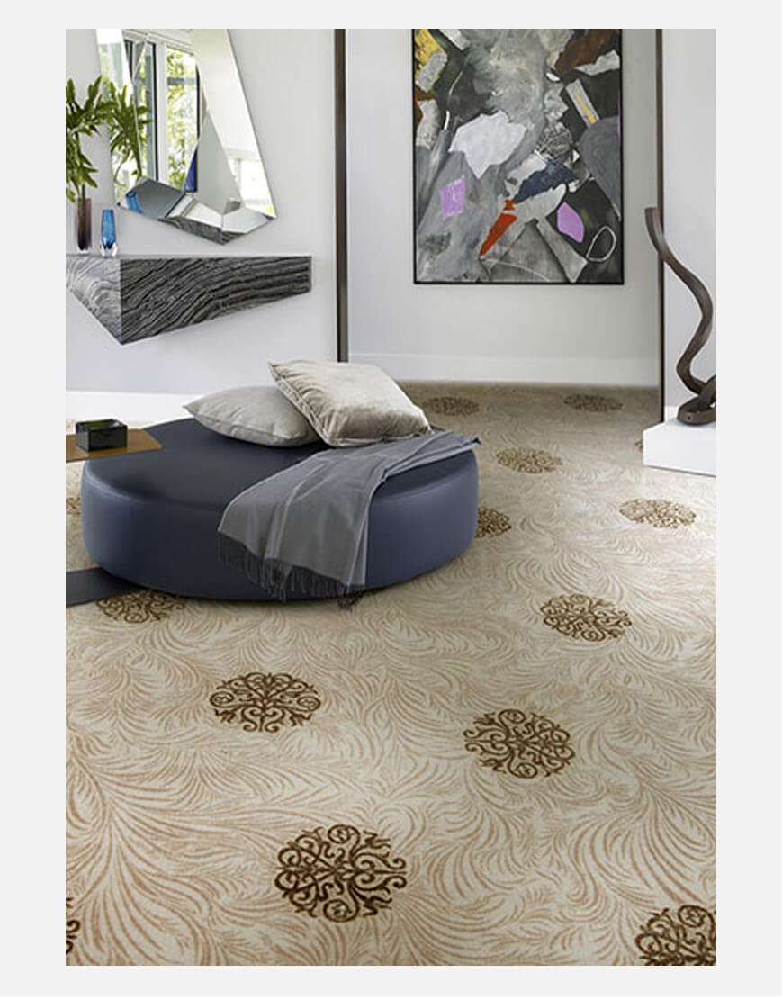 سلام. اتاق خواب کوچیک و ساده ای داشتم که براش موکت تافتینگ ظریف مصور مدل ترنج گرفتم. خیلی به اتاقم رنگ داده و بزرگتر دیده میشه.