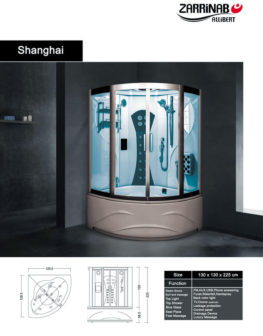 کابین دوش: شامل دوردوشی شیشه ای و بدنه از جنس ورق اکریلیک و زیردوشی با وان روی شایب فلزی می باشذ،که دارای تجهیزات و متعلقلتی است که براساس خواسته متقاضی قابل تغییر است.